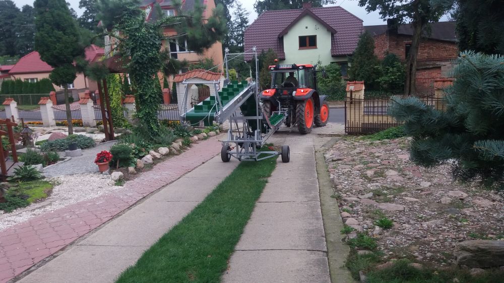 • Uue põlvkonna Universaalne juurviljade laadimiseks mõeldud transporter, mis on ühendatud platvormide või põllumajandushaagistega, saab paigaldada traktori esiosale