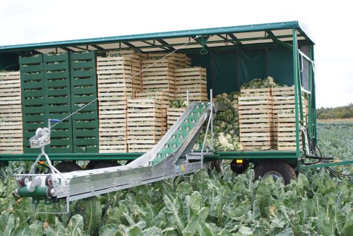 Köögiviljade kiirkoristus(100-120 kaubaalust peakapsast). Töötajad korjavad köögiviljad transportijalt kokku ja asetavad need kaubaaluste kastidesse ja aiakastidesse. Transporteril on automaatse liikumise võimalus